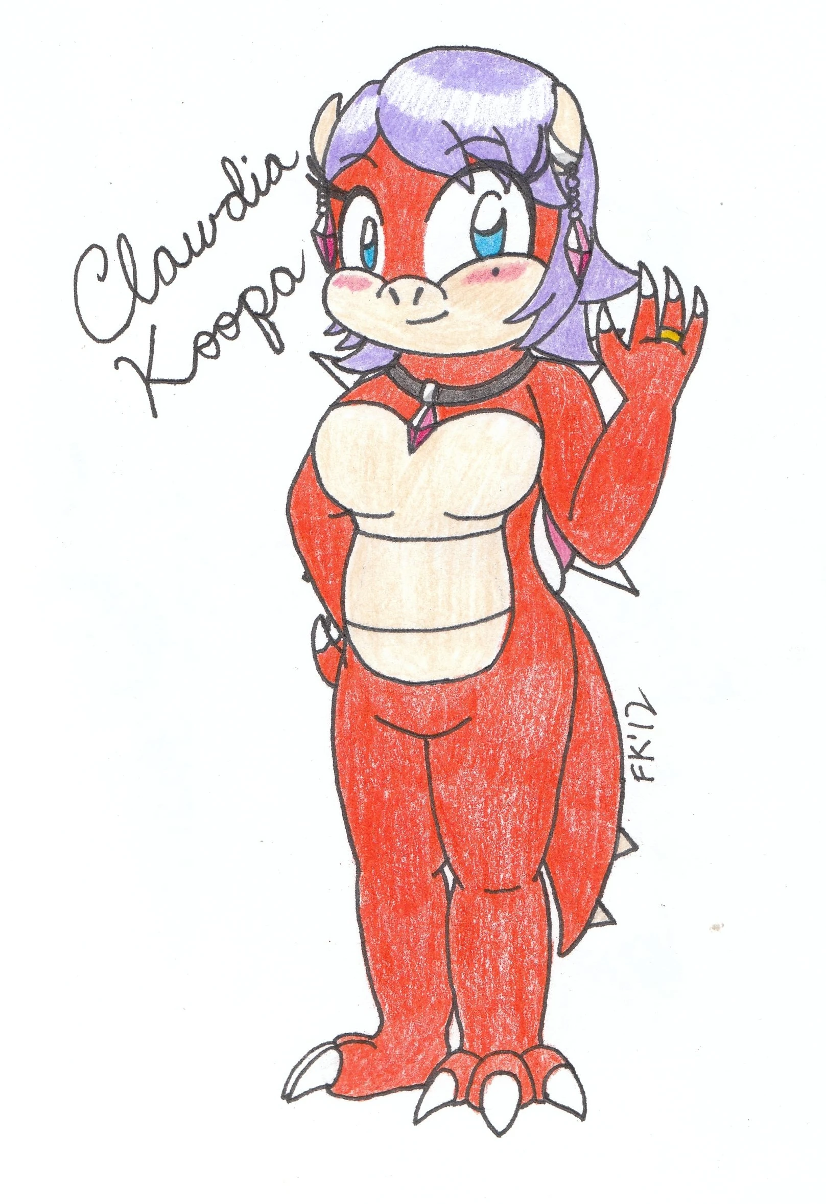 Clawdia Koopa's appearance is very similar to Bowser Koopa she is a koopa, but her body is orange instead of yellow she has a pink shell which is what her daughter Wendy O. Koopa has and has pink hair. She also wears a pink, red and black dress the same as Serena from Pokemon XY and a blue jacket over her dress and wears a pink diamond necklace and pink diamond hornrings with a birthmark on her left cheek. She has blue eyes as well.