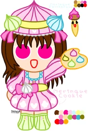 Meringue Cookie is a painter made of the key ingredient, meringue icing, and can draw anything without any mistakes. She is very adorable and friendly. She might get easily angry.