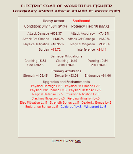 下次升級的潛經驗需求量顯示在裝備的「Potency Tier:」字串旁,需求量也隨著升級而變高。一旦玩家打通道具界,準確的潛經驗數目如以下公式所示: